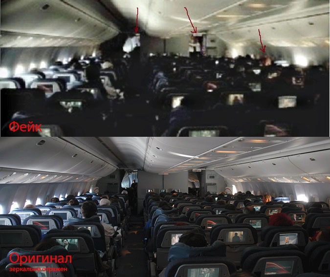 Оставим «за кадром» несоответствие размеров «крыла» реальным размерам крыла самолета. Оставим полное отсутствие следов падения на склонах. Оставим не соответствие «картины разрушений» при ударе самолета о гору… и обратимся к фото «из салона пропавшего рейса».