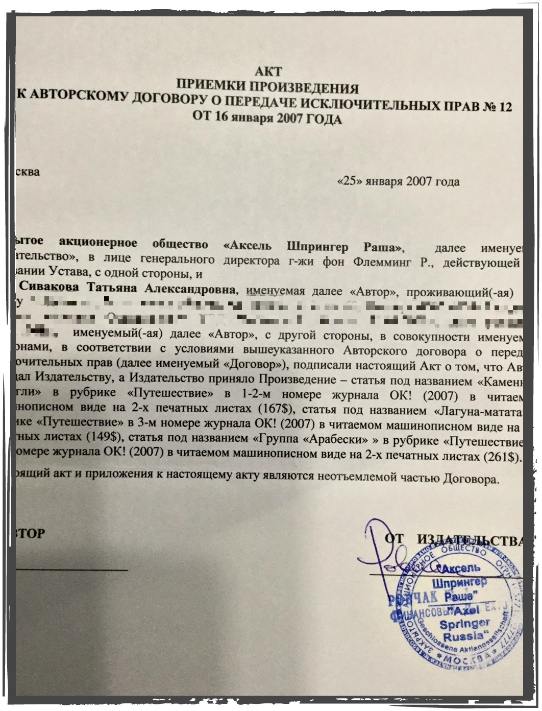 Из договоров выходит, что Сивакова и ACMG подписывали только соглашение о передаче прав на созданный ею контент, но там ни слова не говорится о том, что между двумя сторонами существуют какие-либо формальные трудовые отношения. Поэтому с юридической стороны к работодателю в данном случае какие-либо претензии выдвинуть вряд ли получится, — вернула она к реальности Татьяну Сивакову.