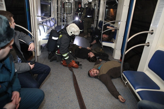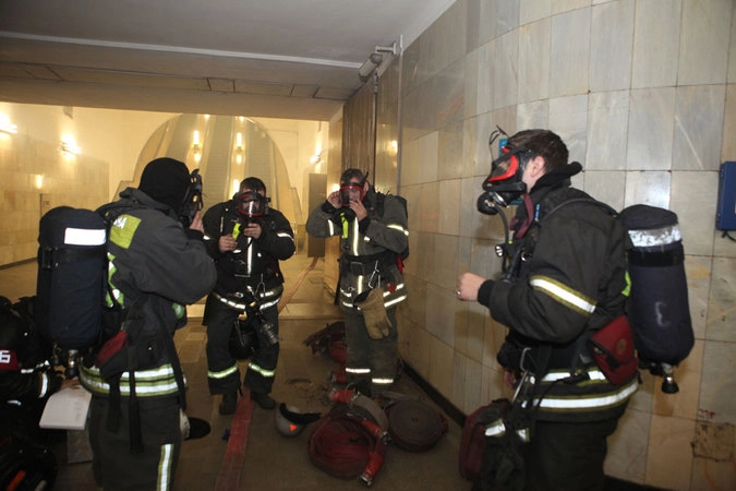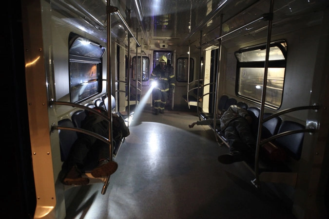 В рамках учений отрабатывалась ситуация возможного взрыва в последнем вагоне поезда при подъезде к станции "Тимирязевская".