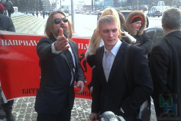 У входа в здание городской мэрии рок-музыкант пообщался с представителями СМИ и воспользовавшись удобным случаем, презентовал им альтернативный вариант герба города Новосибирска с изображением паука в центре. Стоит отметить, изображенный на гербе паукообразный крайне напоминает язычейским символ солнцеворот...