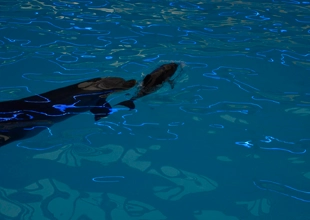 Черноморские дельфины-афалины — мама Бьюти (в переводе с англ. «красота») и папа Фил (с англ. «чувства») стали счастливыми родителями малыша Мира! Дельфиненок отлично себя чувствует и уже питается маминым молочком – оно плотнее воды и малыш ловит его ротиком прямо на лету.