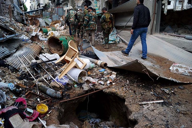 Подобные самодельные взрывные устройства сирийские военные находили в оставленном боевиками районе в огромных количествах.