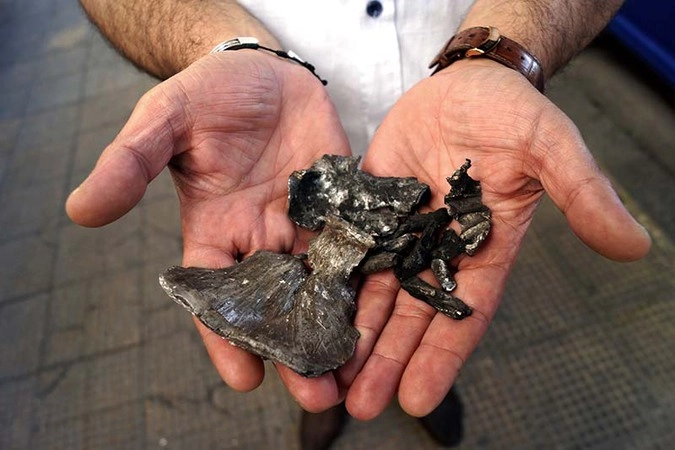 Эти осколки держащий их человек вытащил из собственной машины, оказавшейся вблизи места падения минометного снаряда.