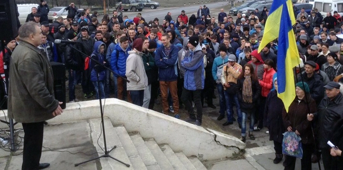 На мероприятии рабочие держат плакаты: «Остановим рейдеров! Защитим порт!», «Белгород-Днестровский — за порто-франко», «Ошибки власти — протест на местах».