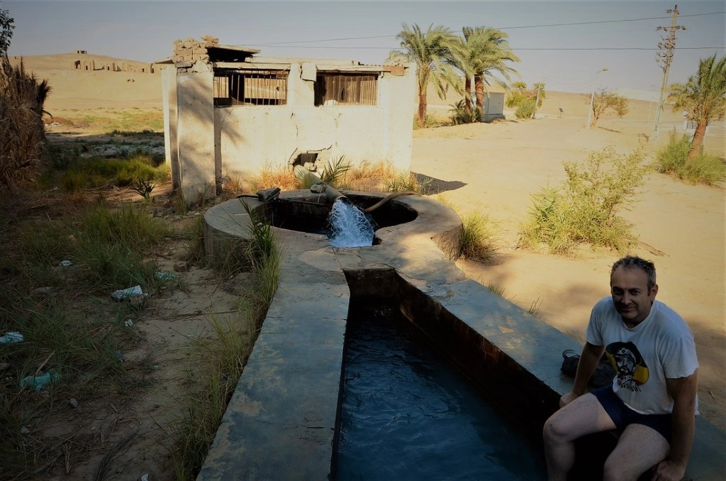 Там же рядом горячие источники, где я уже привычно принимаю легкое омовение перед долгой дорогой через пустыню —