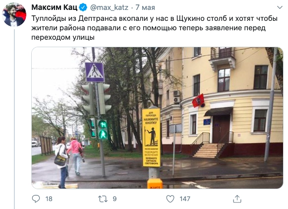 Директор фонда «Городские проекты» Максим Кац и вовсе назвал нажатие пешеходом на кнопку «подачей заявления перед переходом улицы».