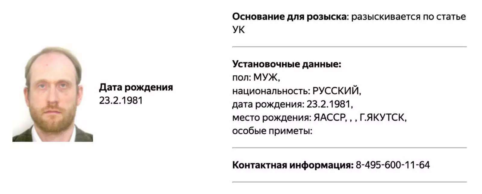 Соответствующая информация появилась в базе данных МВД. По какой статье разыскиваются Кац и Заякин, не уточняется.