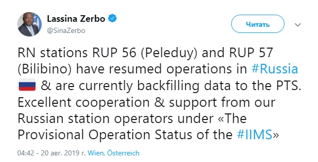 Станции RUP 56 (Пеледуй) и RUP 57 (Билибино) возобновили работу в России и сейчас отсылают данные. Спасибо операторам наших российских станций за сотрудничество и поддержку, — написал Зербо на своей странице в Twitter.