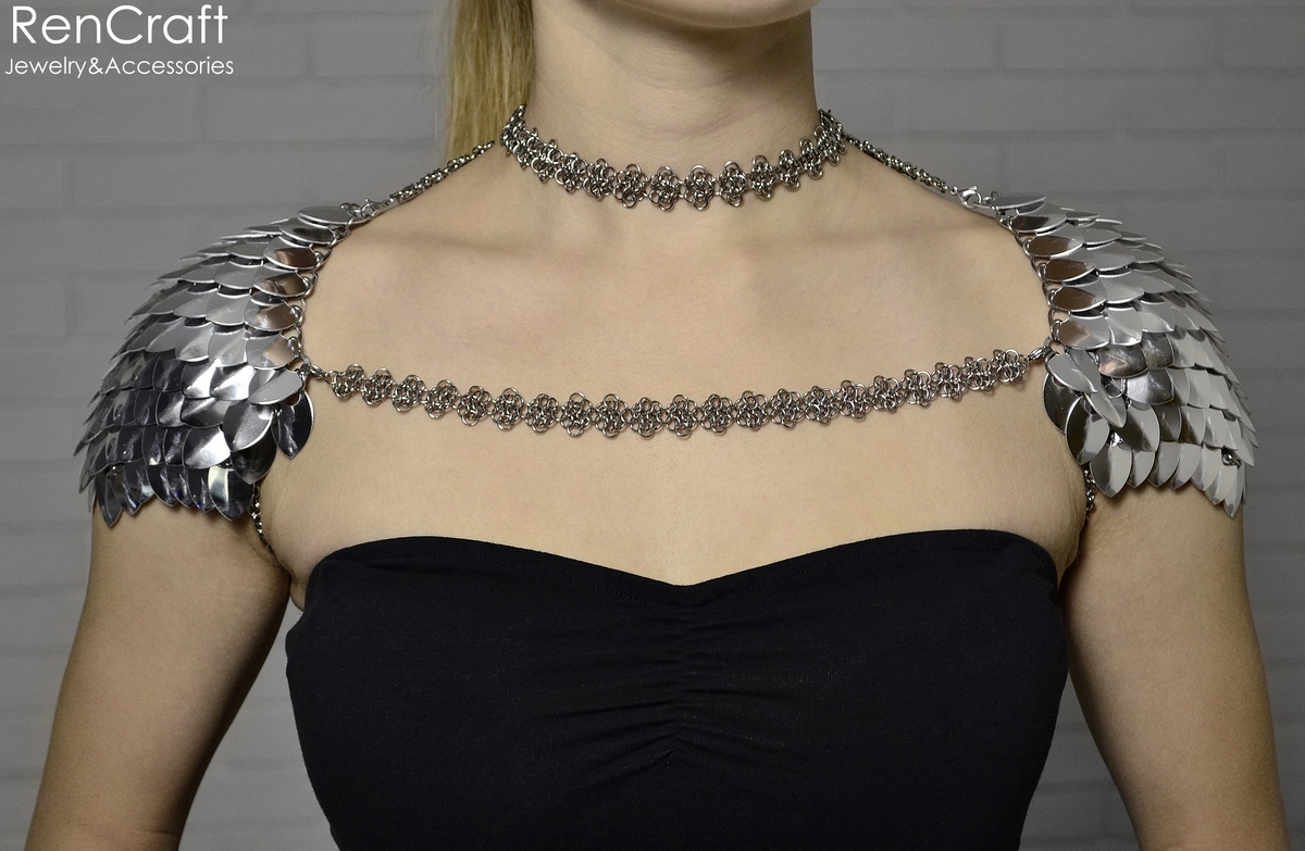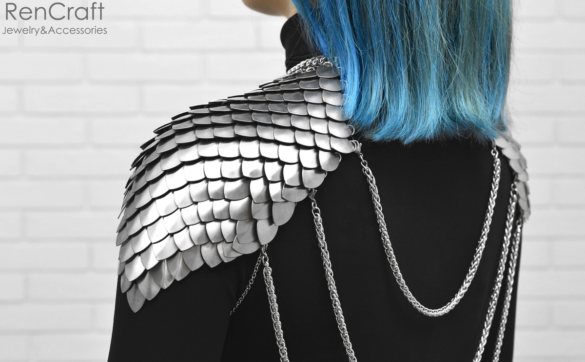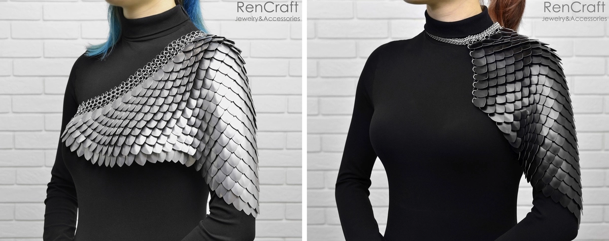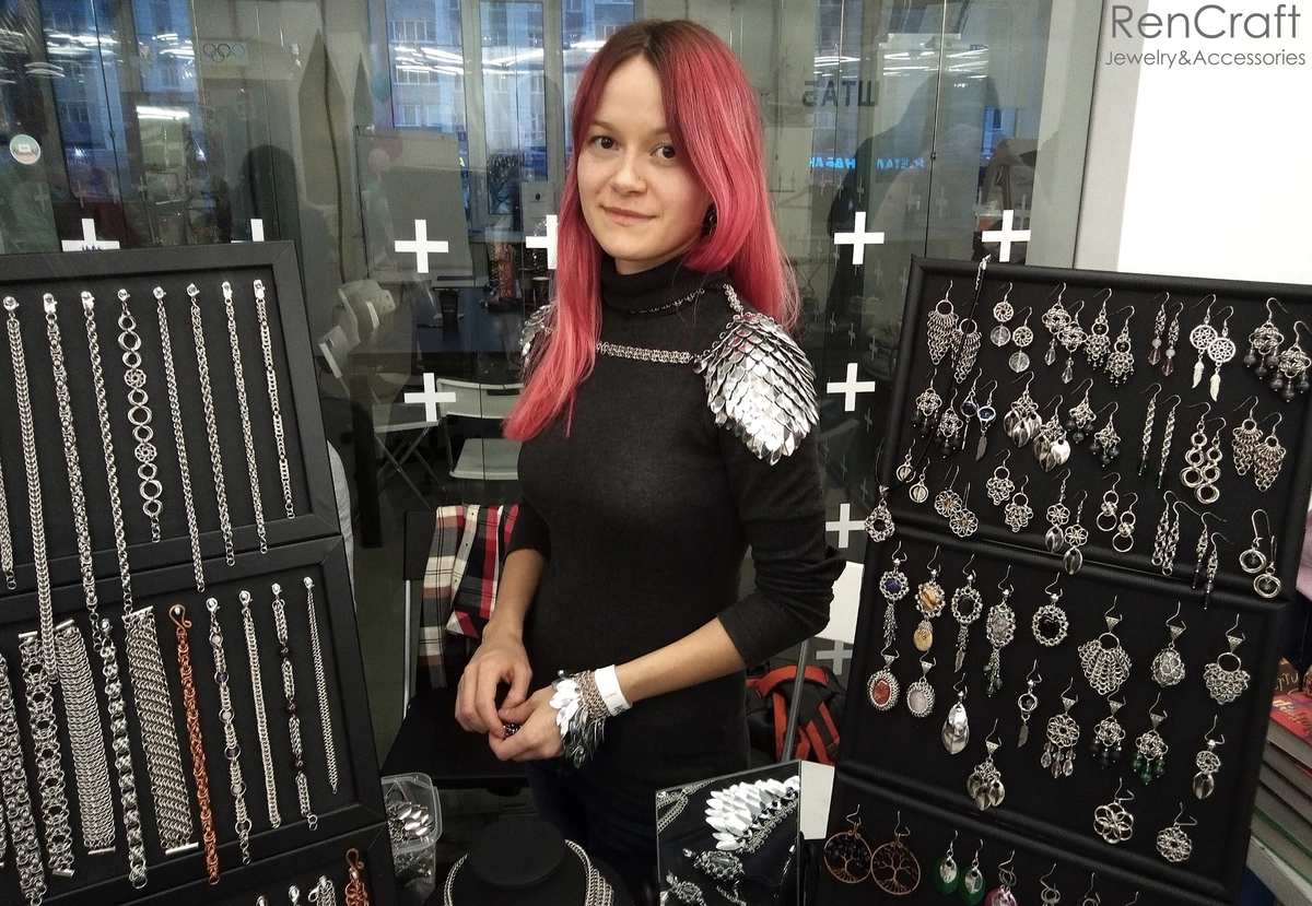 «Свои первые чешуйчатые наплечники я сделала в конце 2018 года. Я тогда еще работала в офисе, все творчество происходило по вечерам и выходным. Тогда это занимало много времени, так как я только знакомилась с этой техникой, в связи с этим работала довольно медленно. Опубликовав результаты своих трудов, мне довольно быстро пришел заказ на аналогичную модель наплечников. В итоге все закрутилось, появился спрос, так что я добавила к своему ассортименту кольчужных украшений еще и чешуйчатые аксессуары», — отметила девушка.