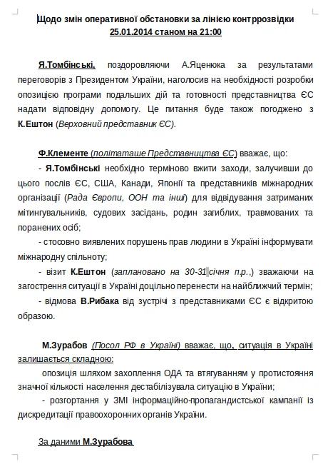А руководство резидентуры СИС Великобритании в Украине вообще запланировало неформальную встречу с официальными представителями спецслужб стран ЕС в Украине. Поводом встречи послужила необходимость согласования совместных действий в условиях обострения ситуации в Киеве.