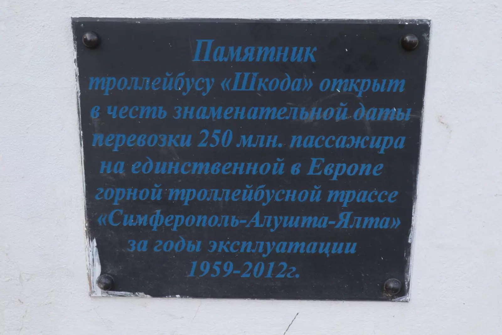 Памятная табличка на троллейвокзале Симферополя.