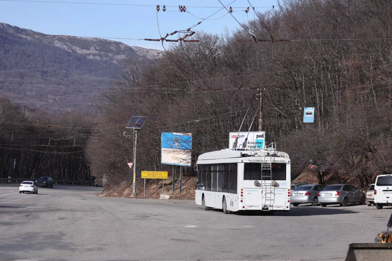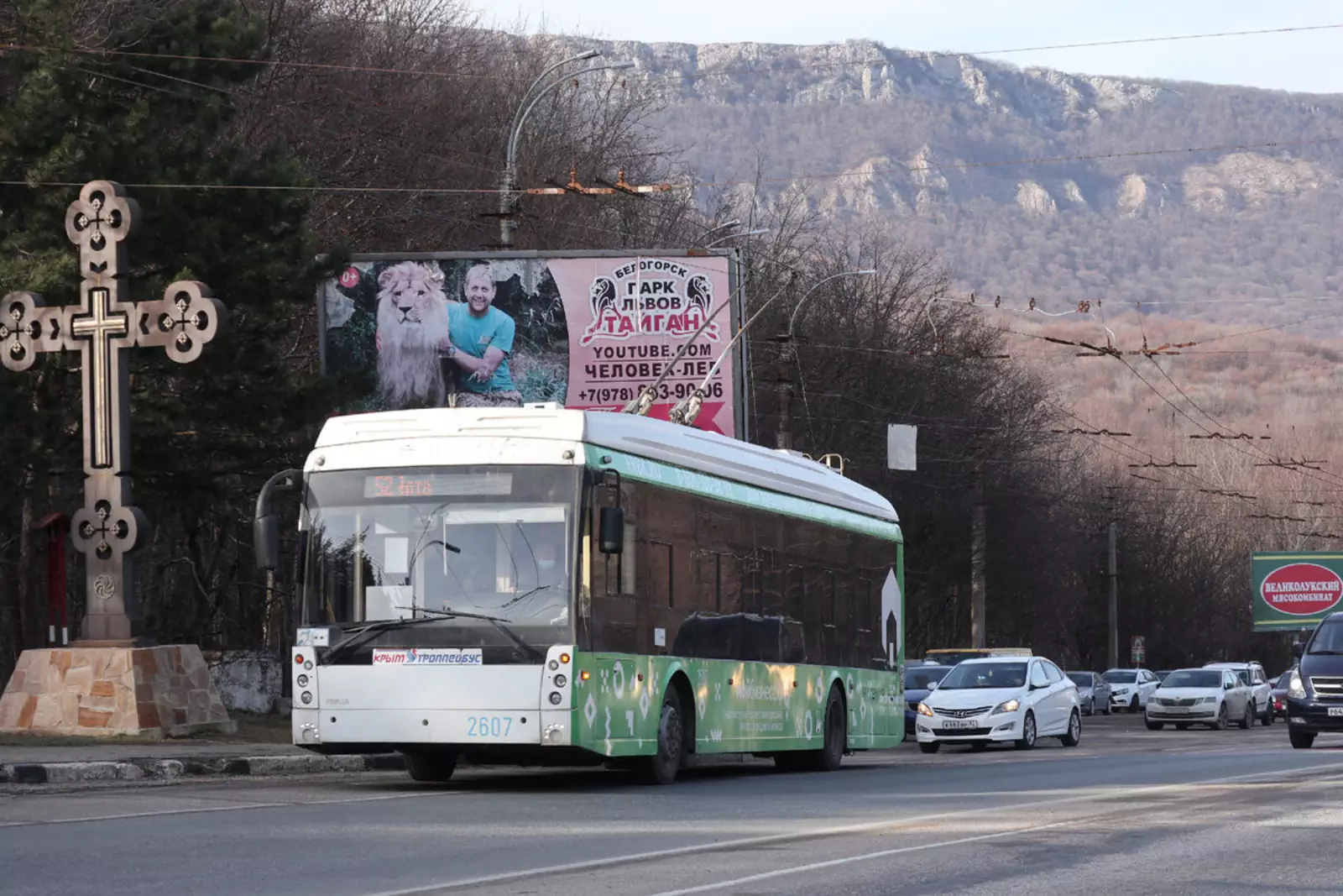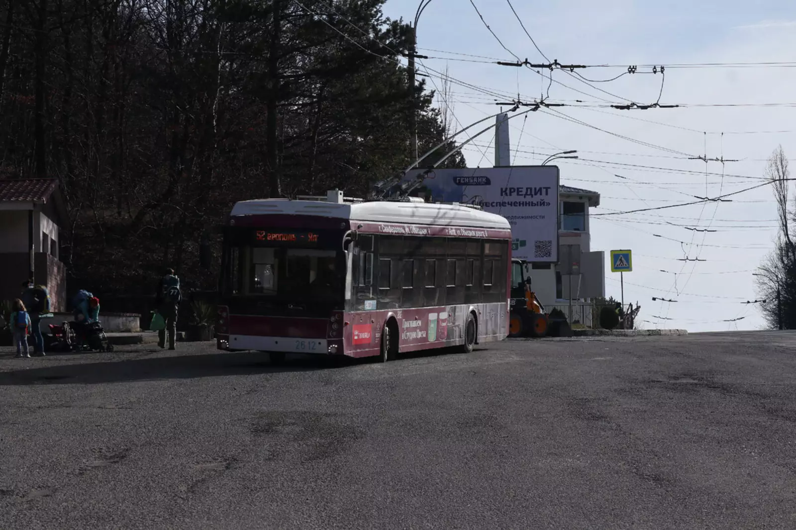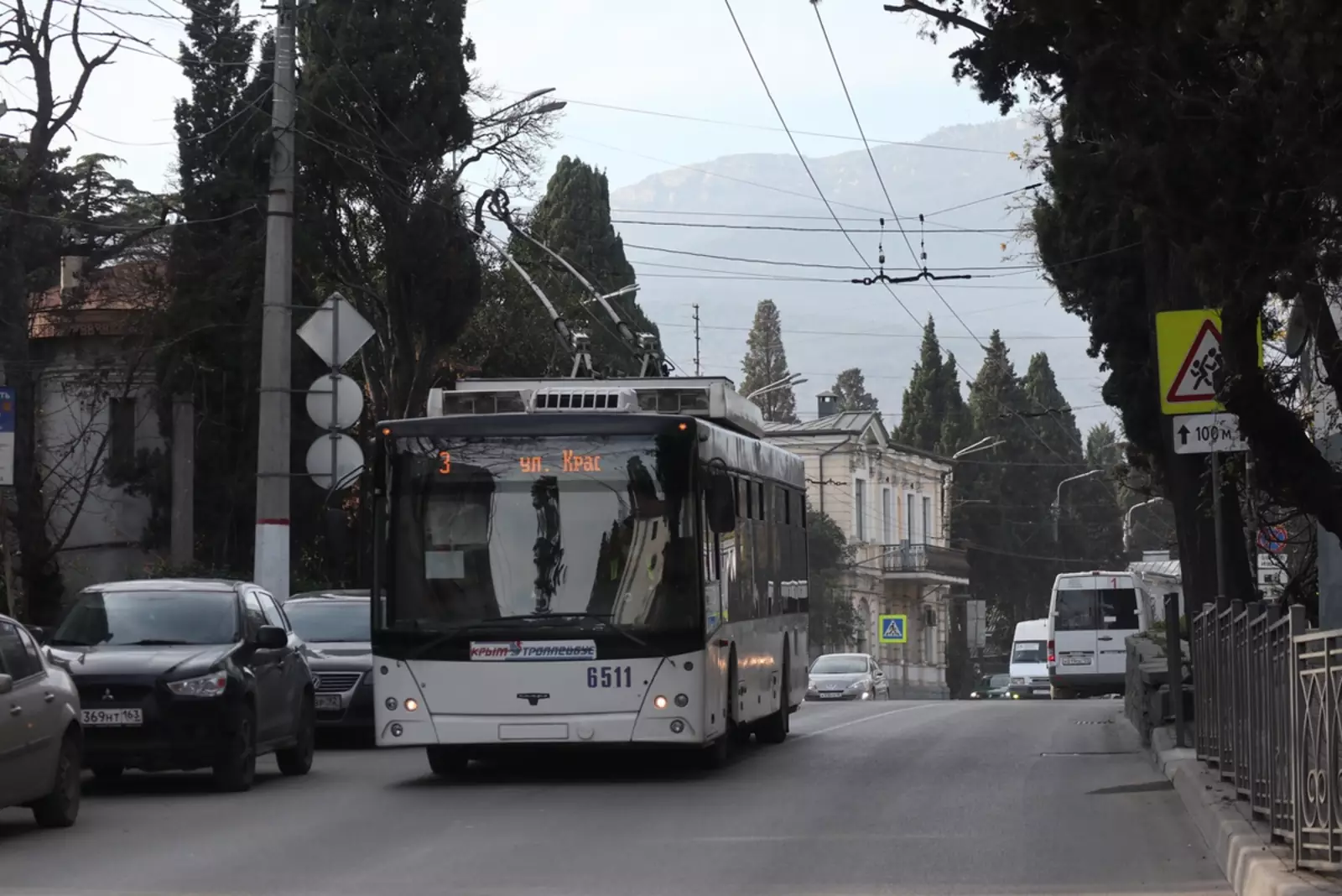 Есть ещё пригородные с обеих сторон. В Ялте это 42 до Никитского ботанического сада, а в Симферополе — 21 до Перевального. На нём встречаются вот такие трёхосные «Богданы».