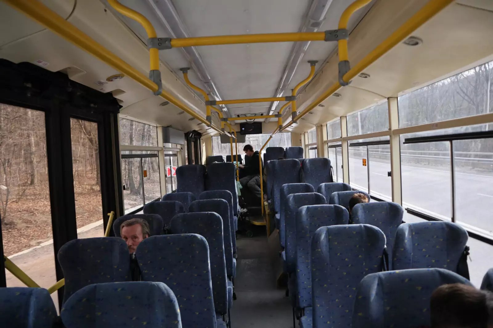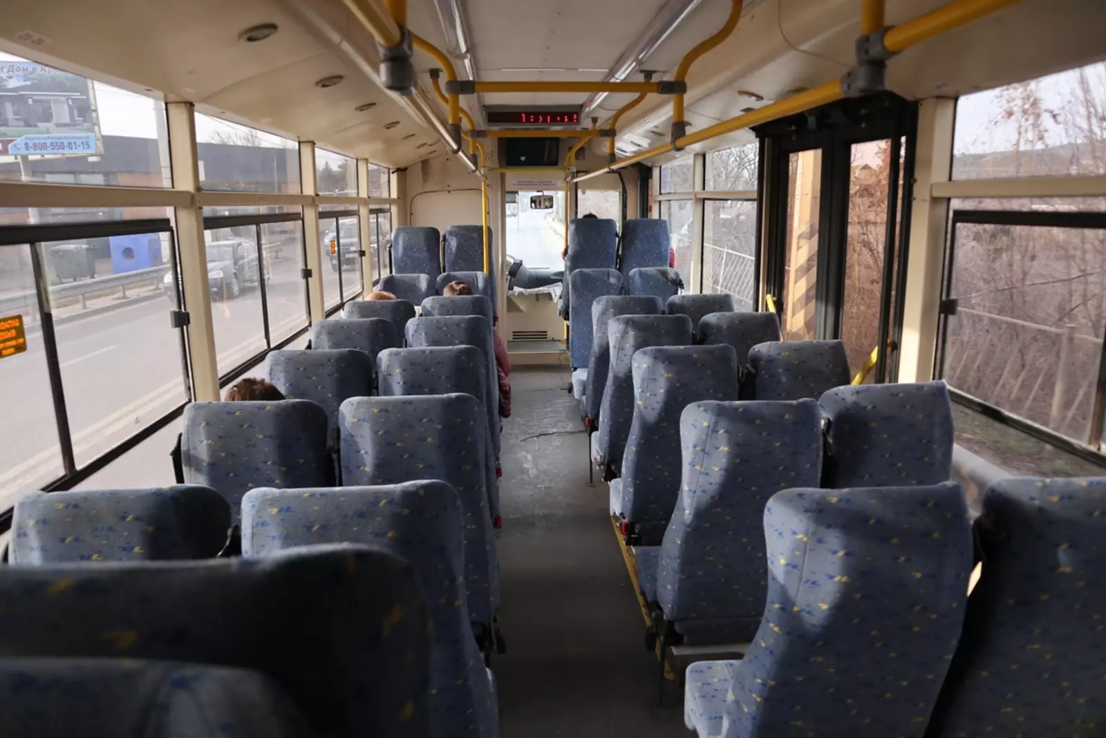 Парковые работники поставили в салоны мягкие междугородние кресла, заблокировав полностью среднюю дверь. Кажется, такое впервые! Раньше в «шкодах» стояли, всё же кресла городской комплектации. А тут прямо такой комфорт и … в троллейбусе!