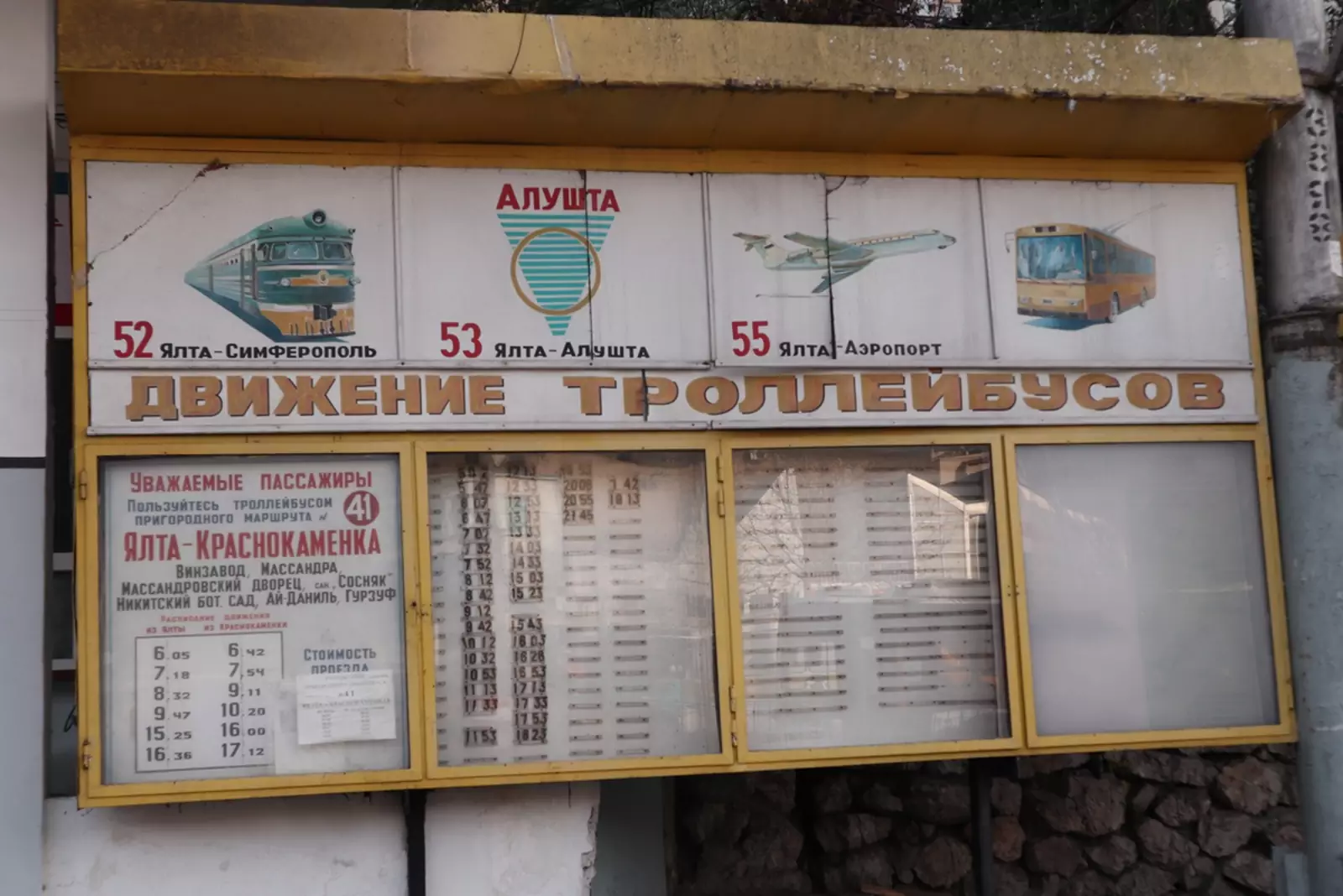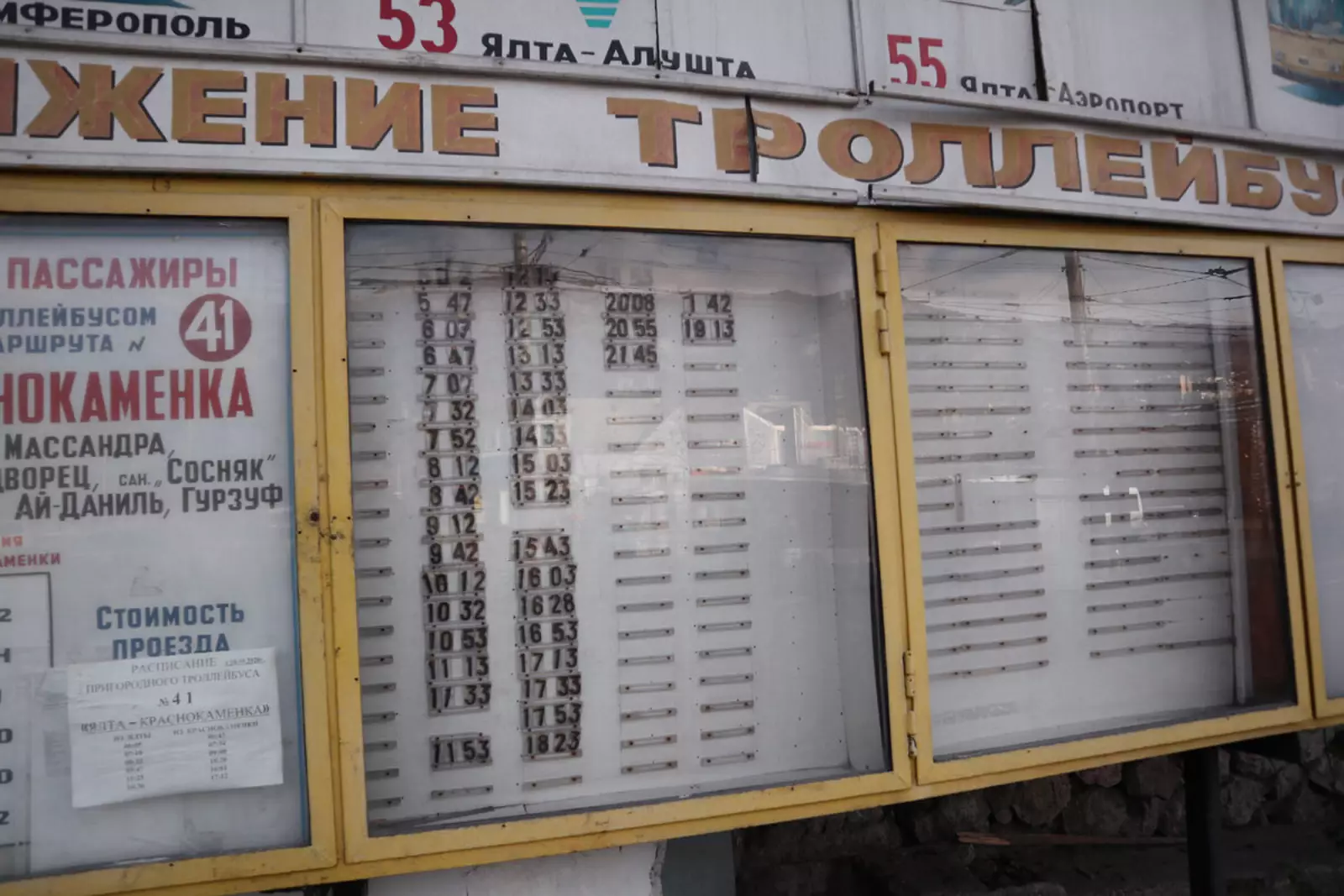Где такие понятия ещё есть. На троллейбусной станции в Ялте сохранились артефакты советских времён.
