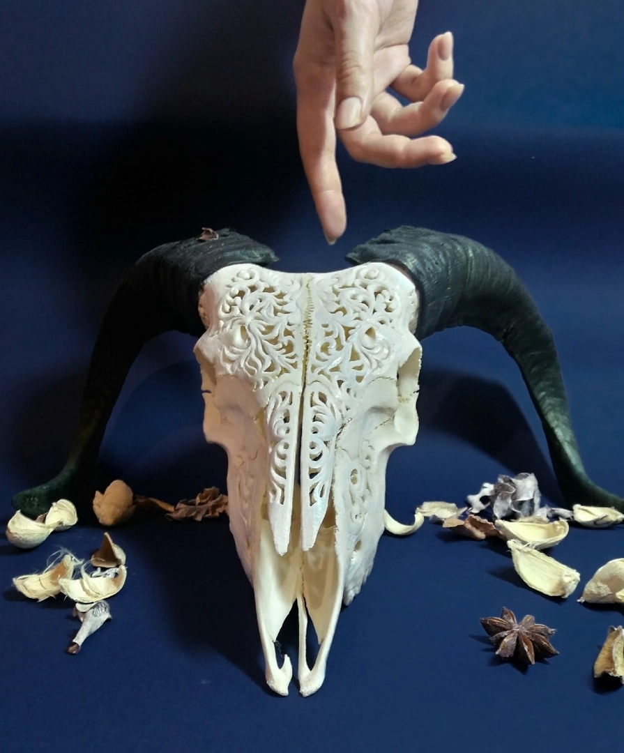 Анастасия отмечает, что делать можно изделия даже из человеческой кости, однако тут свои моральные рамки у каждого. Сама она этим никогда не интересовалась, поэтому даже не знает, легально ли использовать подобный материал в России. Вместе с этим она указала, что сама видела резной человеческий череп в аккаунте девушки из, вероятнее всего, Мексики. Данной мастерице эту работу заказали родственники умершего, которые сами принесли «подготовленный» череп.
