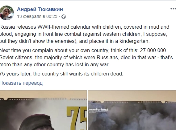 Одни, как и он, выражали недоумение и даже возмущение, другие не видели в этом ничего особенного: мол, «что тут такого, мы в детстве тоже играли в войнушку». Обсуждение началось с утра и продолжилось вечером, после того, как злополучный календарь попал в новости.