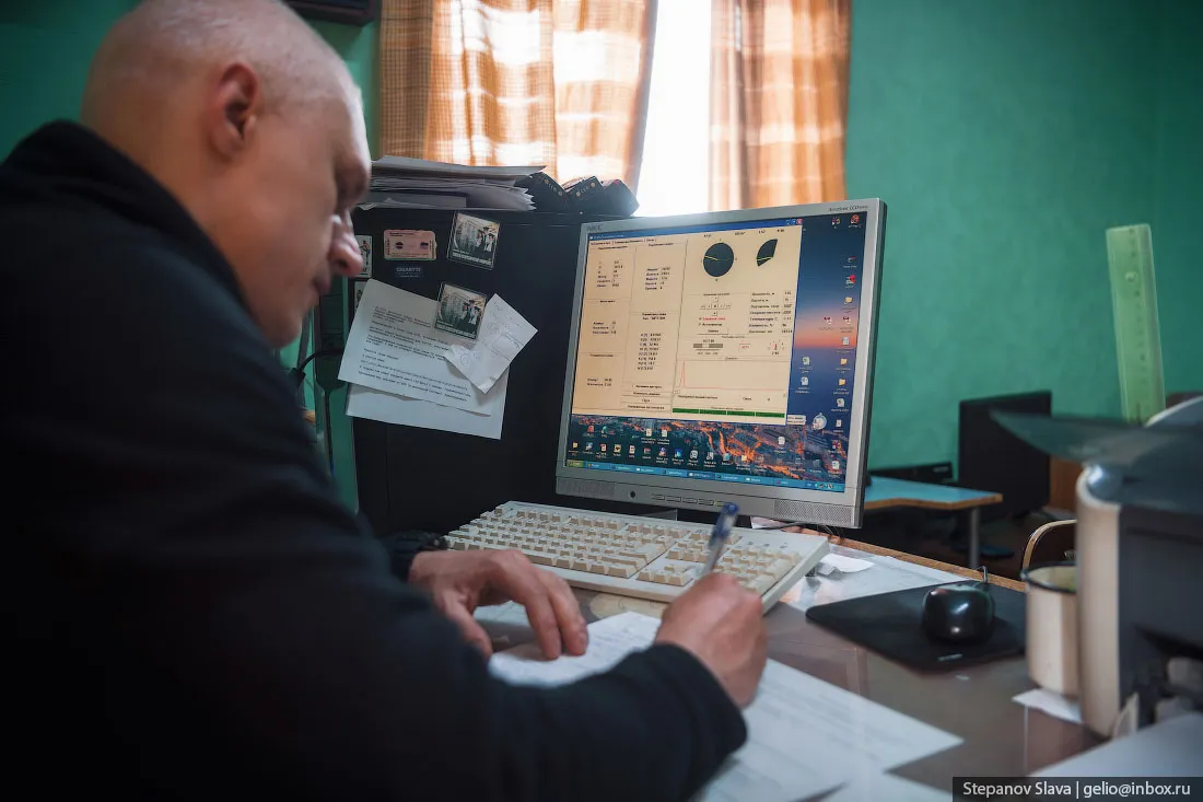 36. В 80-е в посёлке проживало около 200 человек, был свой детский сад, котельная, баня, столярная мастерская и даже теплица. Сейчас персонал станции — 10 человек, поэтому все помещаются в одном здании. Остальные заброшены.