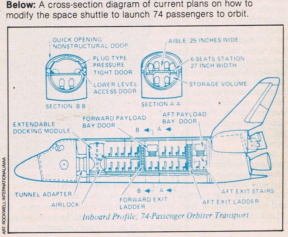 С полётами американских Шаттлов, количество людей побывавших в космосе стало резко возрастать. Корабль вмещал до восьми человек, и навыки пилотирования корабля были обязательны не для всех. Для шаттлов ввели отдельную должность «специалист по полезной нагрузке», которая доставалась не пилотам, а ученым и гражданским специалистам. Предлагались также и проекты модификации космического самолёта для массовых туристических полётов.