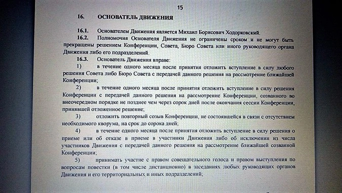 Стоит заметить, что среди традиционных для любой общественной организации органов управления в Уставе «Открытой России» закреплена весьма любопытная должность — Основатель Движения. Её, разумеется, занял Михаил Ходорковский.