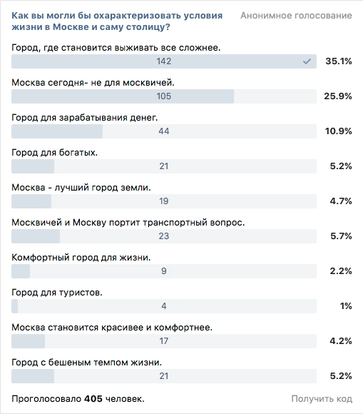 Судя по результатам опроса, проведенного по заказу «Ридуса» в социальных сетях Фейсбук и В Контакте, москвичи разделяют эту точку зрения.