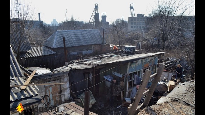 — Стреляли с Песок, где ВСУ стоят, — рассказывает корреспонденту «Ридуса» сосед Николай, занятый разгребанием обломков крыши. — Причем у нас тут ничего нет, ни техники, ни солдат. Вот шахта Засядько рядом, да. Вы же знаете, ее национализировали недавно. Наверное, по ней стреляли, я так думаю.