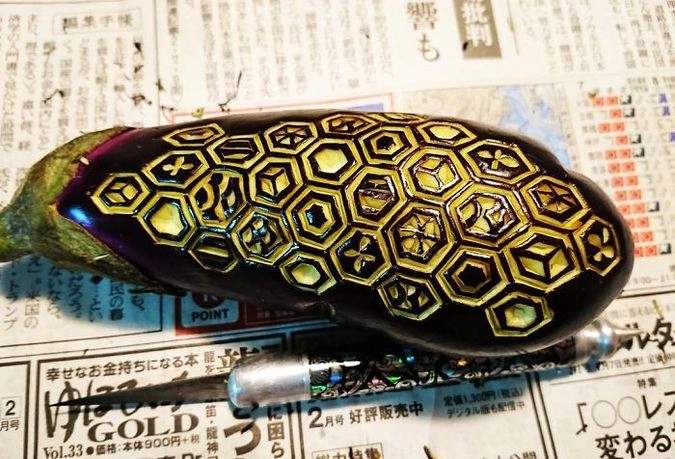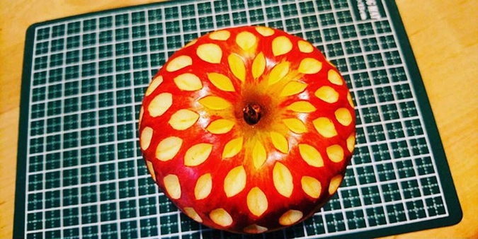 Японец виртуозно вырезает причудливые узоры на фруктах и овощах