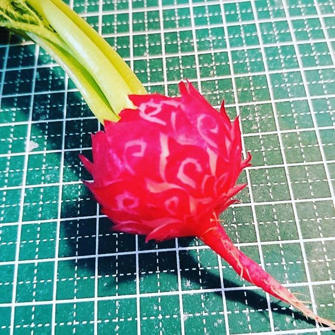 Из-за окисления продуктов резчикам приходится работать очень быстро, что делает произведения Гаку ещё более впечатляющими. Этот японец, виртуозно вырезающий причудливые узоры на овощах и фруктах, своим талантом доказывает, что играть с едой — не всегда плохо, иногда это ещё и искусство. С ним соглашаются более 31 тысячи подписчиков его личной странички в Инстаграм. А как вы считаете, это искусство или пустая трата времени?