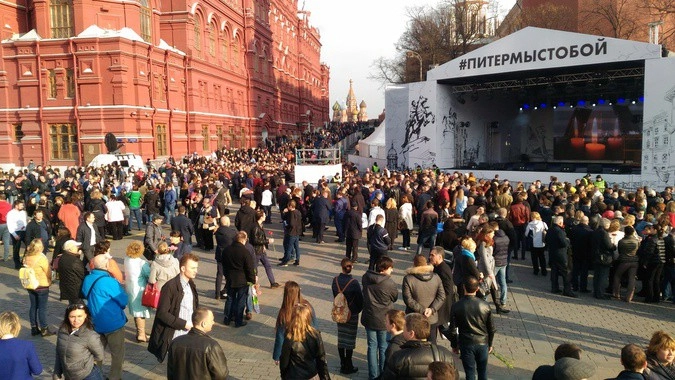 Корреспонденты «Ридуса» прибыли на Манежную площадь, где проходит вечер памяти погибших в теракте в петербургском метро. Мероприятие проходит в форме памятного вечера-концерта. По заявлению организаторов, «основным лейтмотивом станет сопереживание и поддержка жителей Санкт-Петербурга, скорбь по погибшим и наглядный ответ террористам, что запугать и разобщить граждан России у них не получится».
