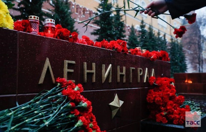 Сотни людей выходят из метро к Александровскому саду, чтобы возложить цветы к стеле города-героя Ленинград:
