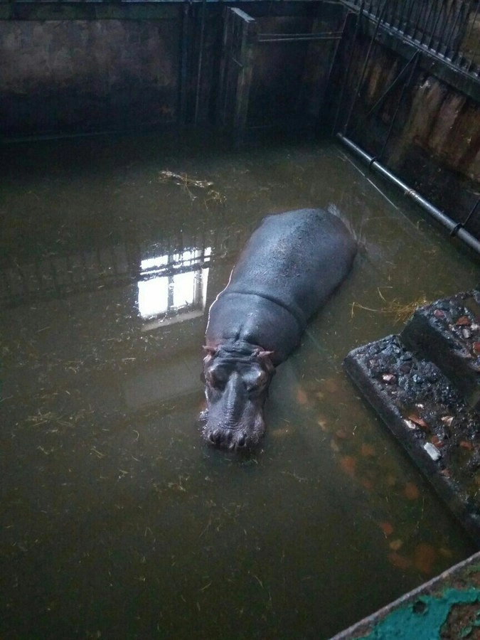 Грязный вольер для бегемота тоже не выходит за рамки нормы, продолжили сотрудники министерства культуры региона. По их словам, воду ему меняют регулярно, но животное, следуя законам дикой природы, туда регулярно испражняется.
