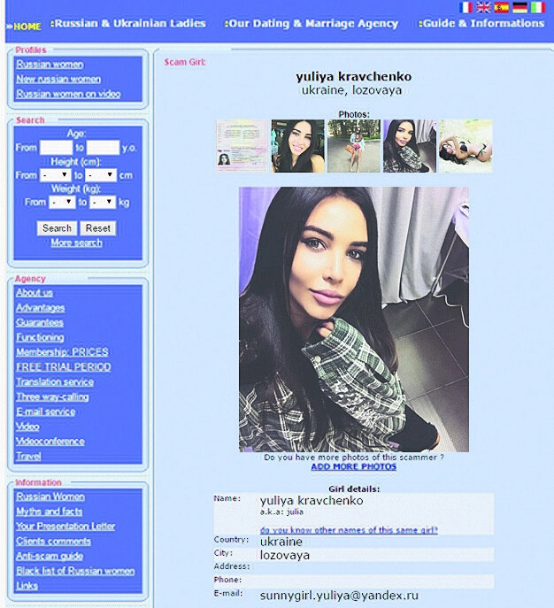 Впрочем, обманутые европейцы не спешат заявлять о таких историях в полицию. Чаще они добавляют своих «невест» в черные списки международных брачных агентств. Список нечестных украинок можно найти на сайтах russian-dating-scams.com и antiarnaques.org.
