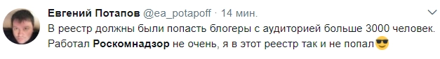 Напомним, закон распространялся на блогеров, которых в сутки посещали более трех тысяч пользователей. Блогеры были обязаны подать заявку в реестр самостоятельно. Закон запрещал им публиковать непроверенную информацию, призывать к экстремизму и прочее. Фактически закон частично распространил на них обязанности СМИ.