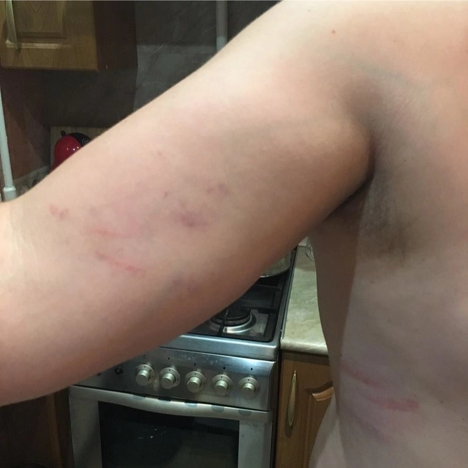 После встречи с ретивым сотрудником ДПС на теле водителя остались ссадины и синяки.