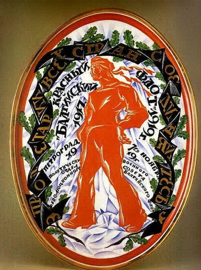 Р.Ф. Вильде. Тарелка "Всем, кто смел и сердцем молод, в руки - книга, серп и молот". Гос. фарфоровый завод, 1921. Фарфор, роспись надглазурная.