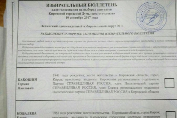 «Из Кирова поступило сообщение о якобы поддельных избирательных бюллетенях. Мы связались с коллегами в Кирове, они проверили, поддельных бюллетеней не обнаружили, зато выявили грамматические ошибки, допущенные по вине местной типографии», — сообщил Брод корреспонденту ТАСС.