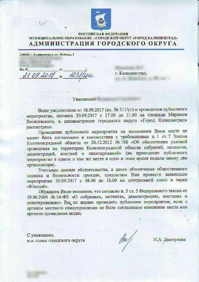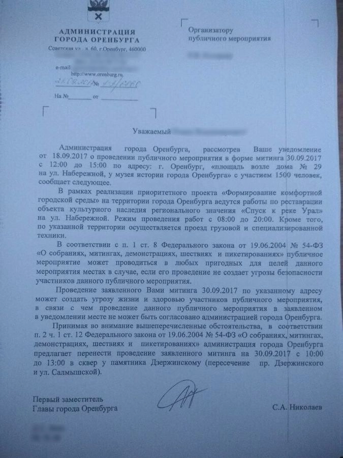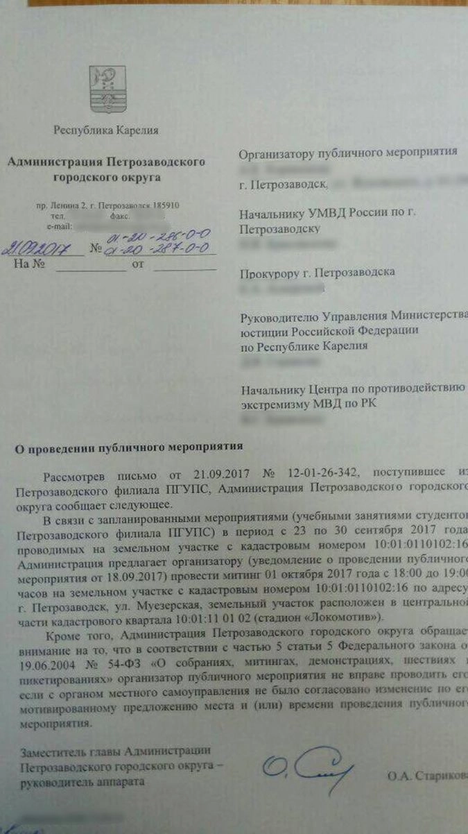 В Сети опубликованы копии разрешительных документов на мероприятия, запланированные блогером Алексеем Навальным в конце сентября и начале октября 2017 года.