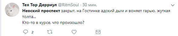 «Я ехала от „Невского проспекта“ к „Горьковской“. Повалил дым в вагоне достаточно густой. Но ничего, народ открыл форточки, паники не было. Бабуля рядом запаниковала, ее успокоили», — рассказала Пятому каналу одна из пассажирок.