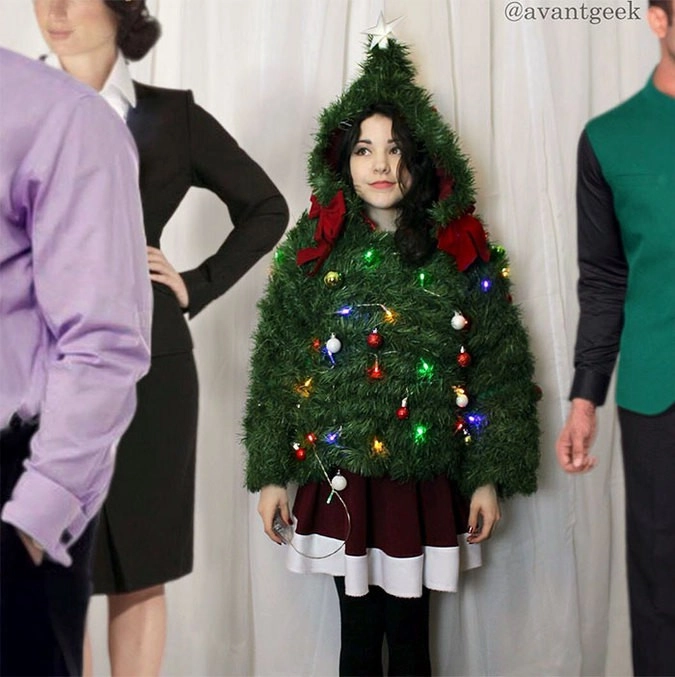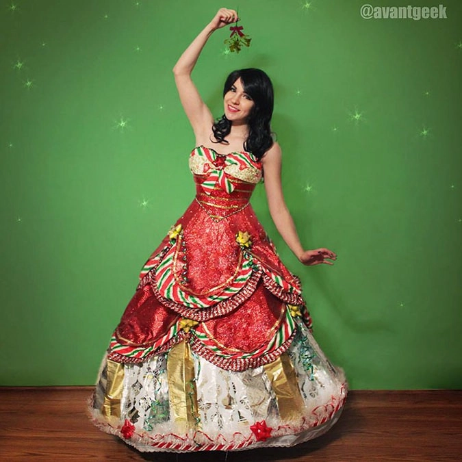 Оливия Мирс (Olivia Mears), известная в соцсетях под именем avantgeek, родилась в Северной Каролине, США, там она работает художницей по костюмом и дизайнером. Однажды под Новый год ей в голову пришла гениальная идея использовать для создания праздничного наряда упаковочную бумагу от подарков, а также ленты, бантики и блёстки. Первое своё платье Оливия создала в 2013 году. Фотографии необычного наряда быстро стали вирусными. Вдохновлённая девушка превратила удачный эксперимент в ежегодную традицию.