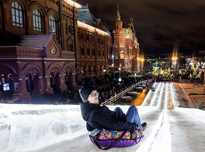 Через пару сотен метров, на площади Революции, можно покататься с огромной ледяной горки. А если вам все-таки хочется более спокойного отдыха, прогуляйтесь по окрестным переулкам и бульварам. Полюбуйтесь необычными елками возле ЦУМа, оформленными в стиле любимых сказок: «12 месяцев», «Морозко», «Алиса в Зазеркалье»