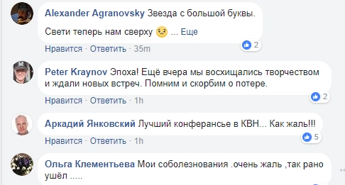 В своих комментариях пользователи соцсети принесли свои соболезнования и добрым словом помянули замечательного капитана команды, которая трижды становилась чемпионом Высшей лиги КВН.