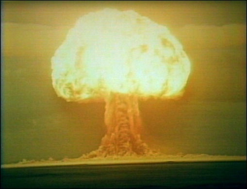 В августе 1953 года на Семипалатинском полигоне была испытана первая в мире водородная бомба. Сахаров лежал рядом с руководителями проекта, уткнувшись лицом в землю, но в какой-то момент не выдержал, сорвал защитные очки и посмотрел в лицо своему созданию: «Я… успел увидеть расширяющееся огромное облако, под которым растекалась багровая пыль. … Оно стало быстро отделяться от земли, клубясь и сверкая оранжевыми проблесками. Постепенно оно образовало как бы „шляпку гриба“. С землей его соединяла „ножка гриба“… В этот момент до нас дошла ударная волна.»