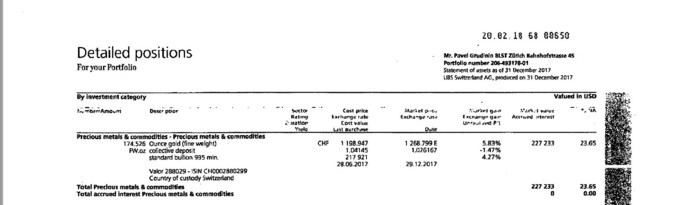 Грудинин информацию опроверг, однако наличие золотого запаса кандидата удалось подтвердить с помощью выписки по счету в швейцарском банке UBS.