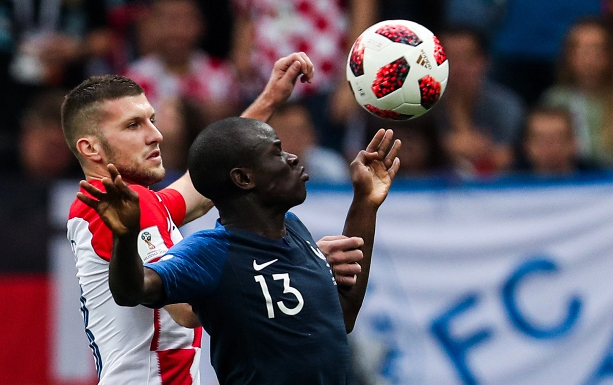 А у нас первая замена! У французов поле покидает Нголо Канте. Вместо него на поле появился Стивен Нзонзи.