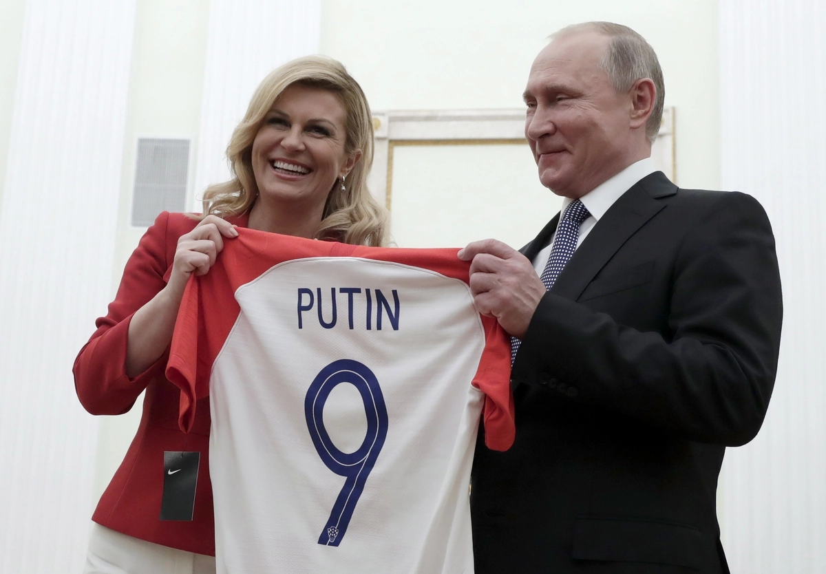 Президент Хорватии Колинда Грабар-Китарович перед игрой даже подарила Владимиру Путину футболку своей национальной сборной. На майке с фамилией Putin обозначен 9-ый номер.