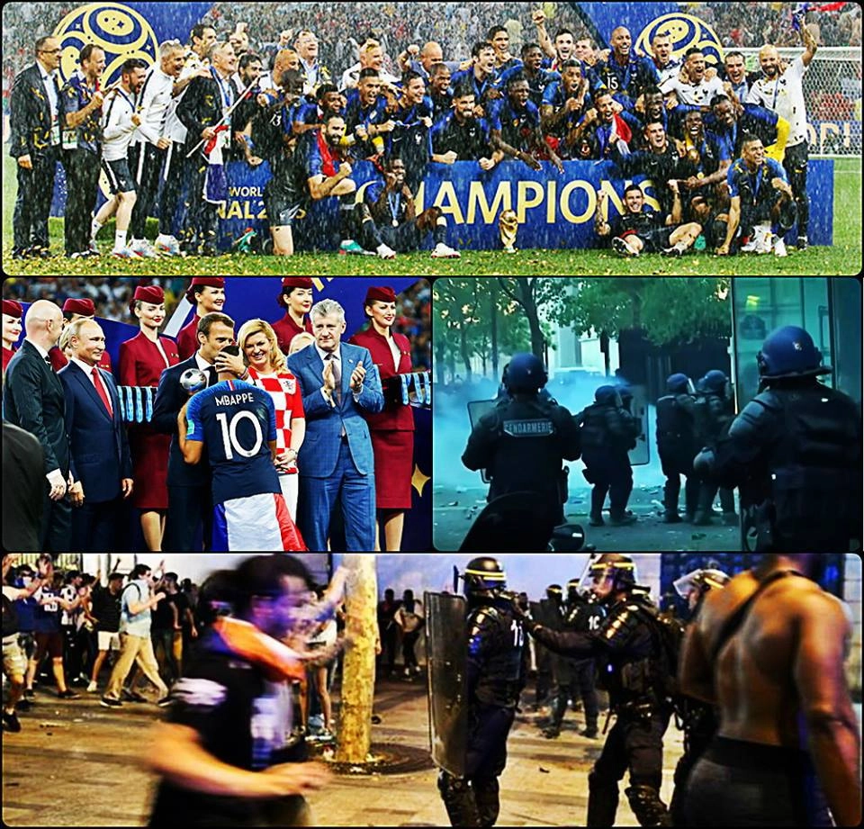 Команда же победила, так почему же произошли беспорядки? Множество людей, празднуя победу, собралось на Елисейских Полях. Начались погромы. Полицейские силы были вынуждены вмешаться, поскольку магазины подверглись грабежу, а ряд выходцев из гетто вступали в столкновения с силовиками.