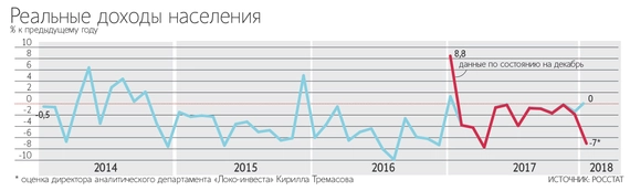 Тот же самый Росстат на прошлой неделе сообщал, что с декабря 2017 года доходы граждан упали на 0,9%.