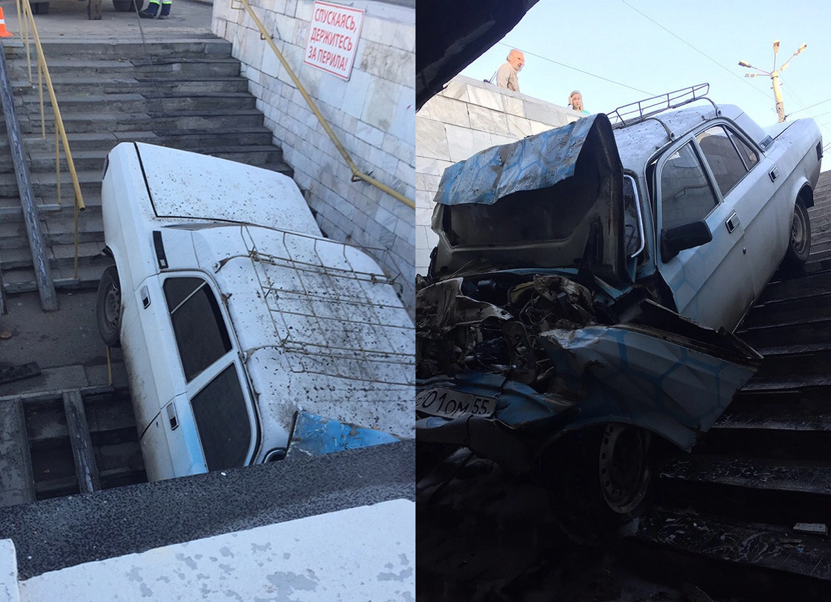 В Омске «Волга» на полном ходу въехала в подземный переход. Авария произошла в 6 утра (3:00 МСК).