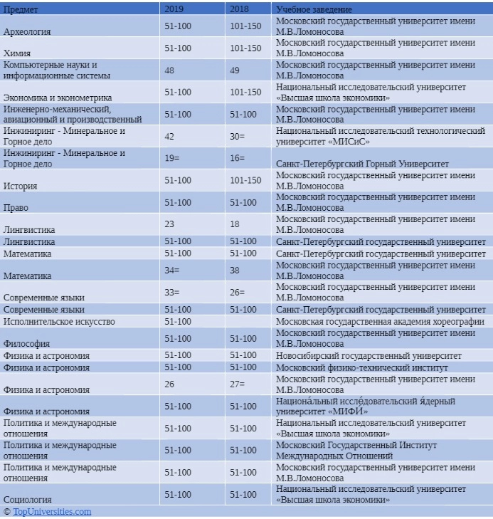 Вузы, которые принимали участие в проекте повышения конкурентоспособности отечественных университетов и институтов «5−100», значительно улучшили свои позиции в предметных рейтингах, составленных британским аналитическим агентством QS Quacquarelli Symonds, а также вошли в четыре отраслевых рейтинга QS.