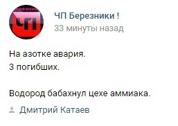 По предварительной информации министерства территориальной безопасности, в 10 утра в цехе № 1 завода «Азот» (г. Березники) при проведении сварочных работ на вспомогательном производстве произошел взрыв. В результате трое рабочих погибли на месте, один в состоянии средней тяжести госпитализирован в медицинское учреждение . Предварительные причины инцидента устанавливается, — цитирует релиз министерства портал.