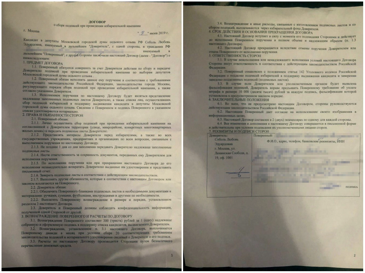 Штаб Соболь заключает договоры со своими сборщиками. Иван (обратившийся попросил изменить имя, так как, по его словам, опасается расправы) подписал такой договор 7 июня, сразу после прохождения тренинга.